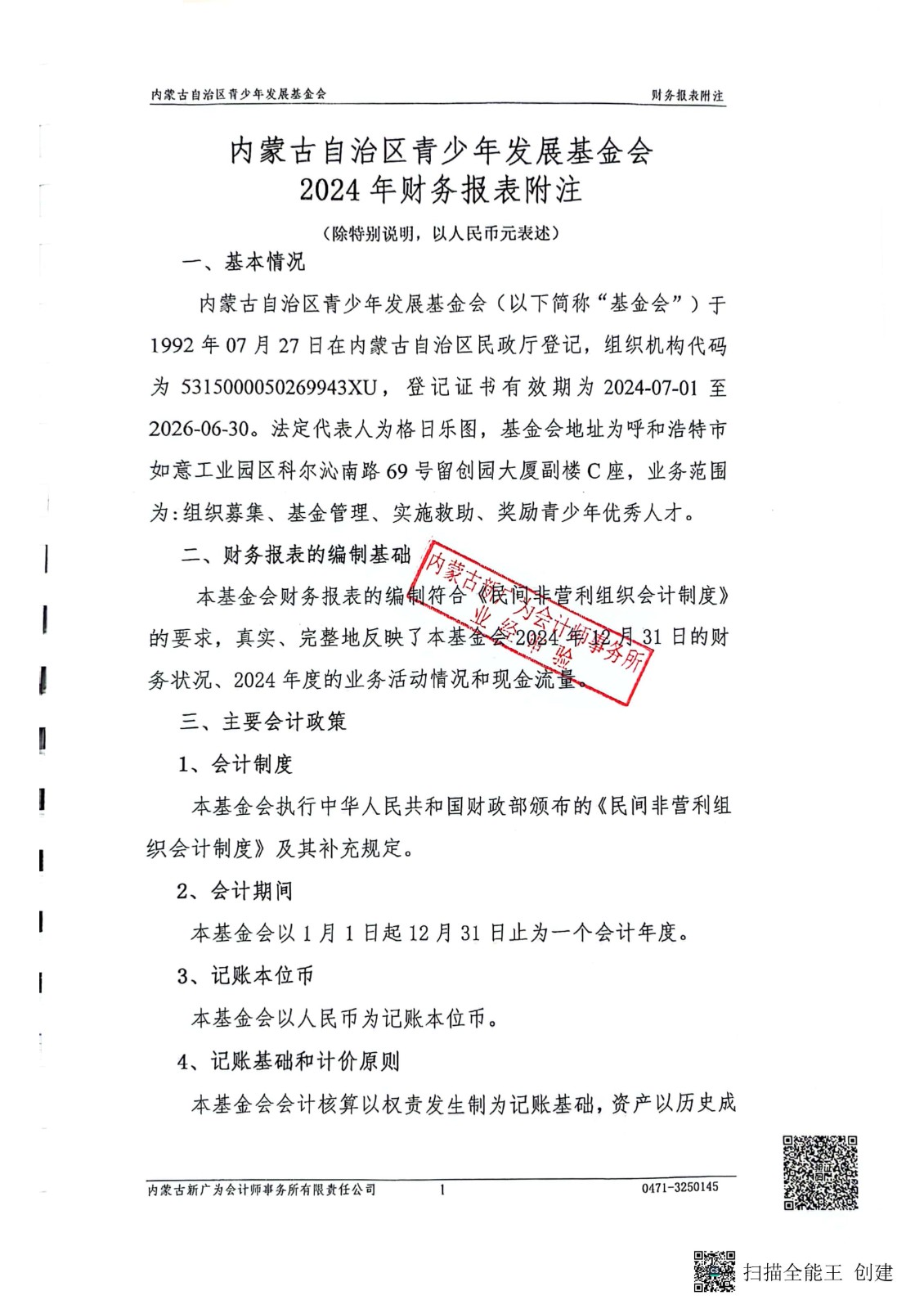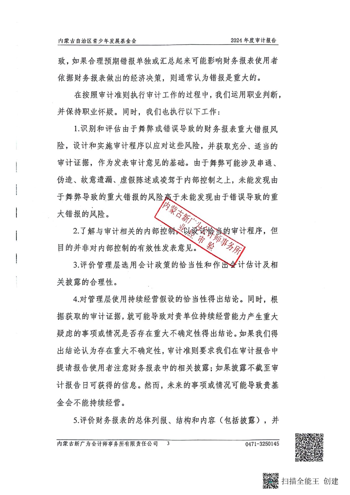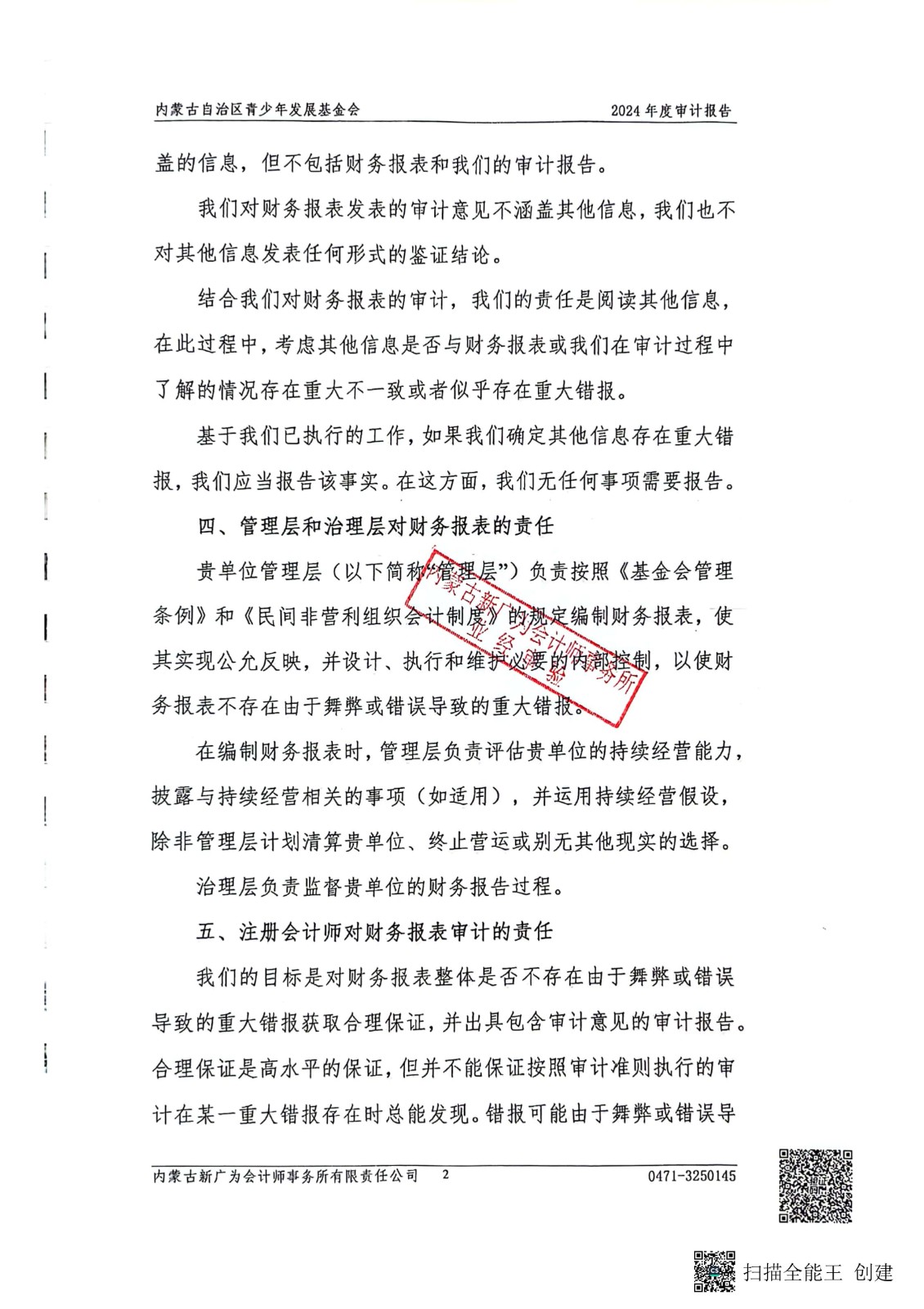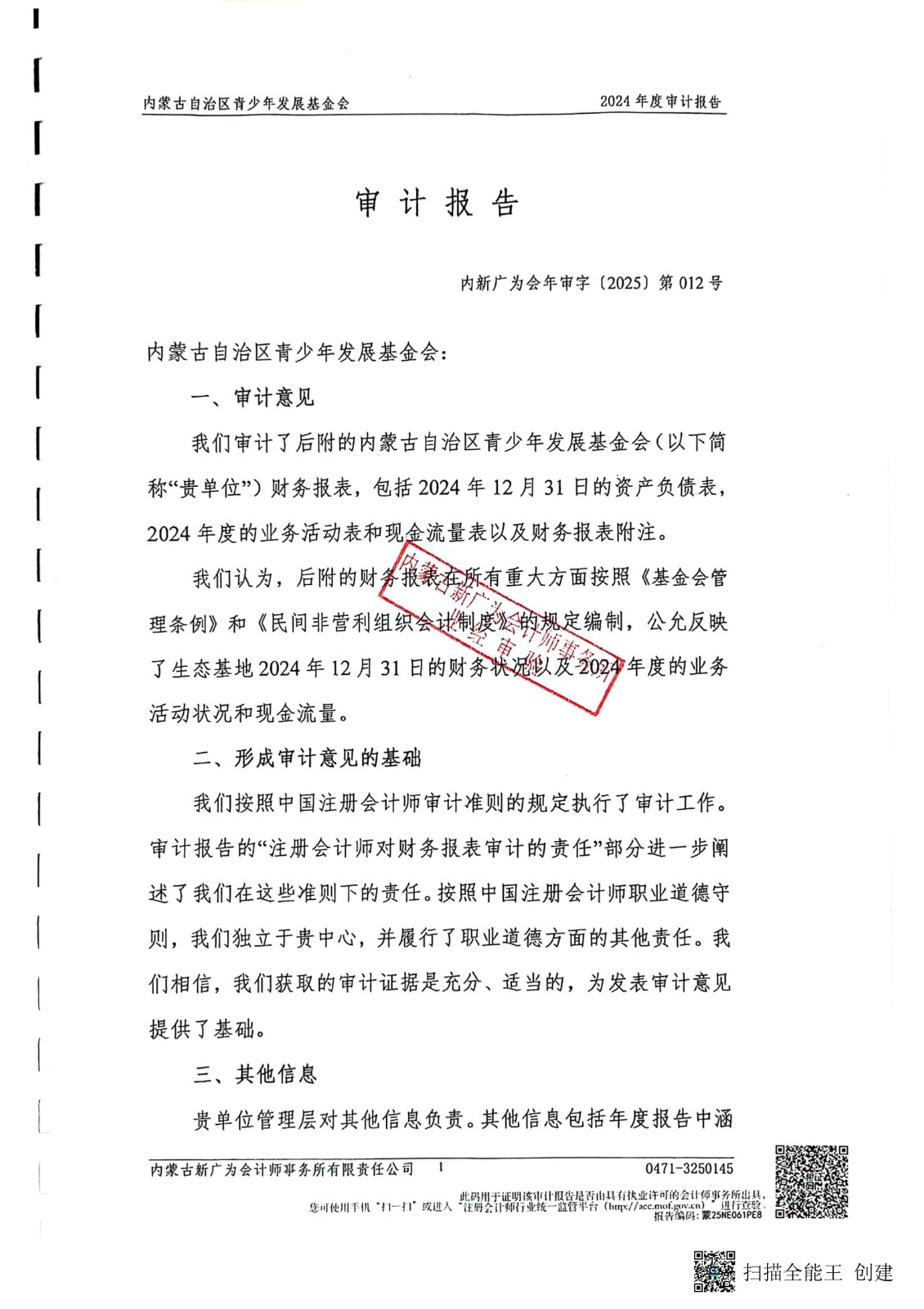 内蒙古自治区青少年发展基金会2024年度财务报表审计报告
