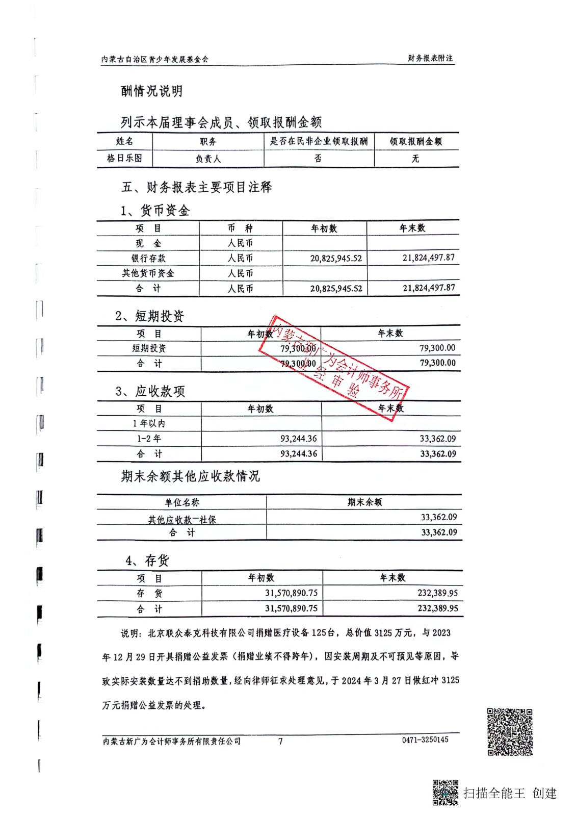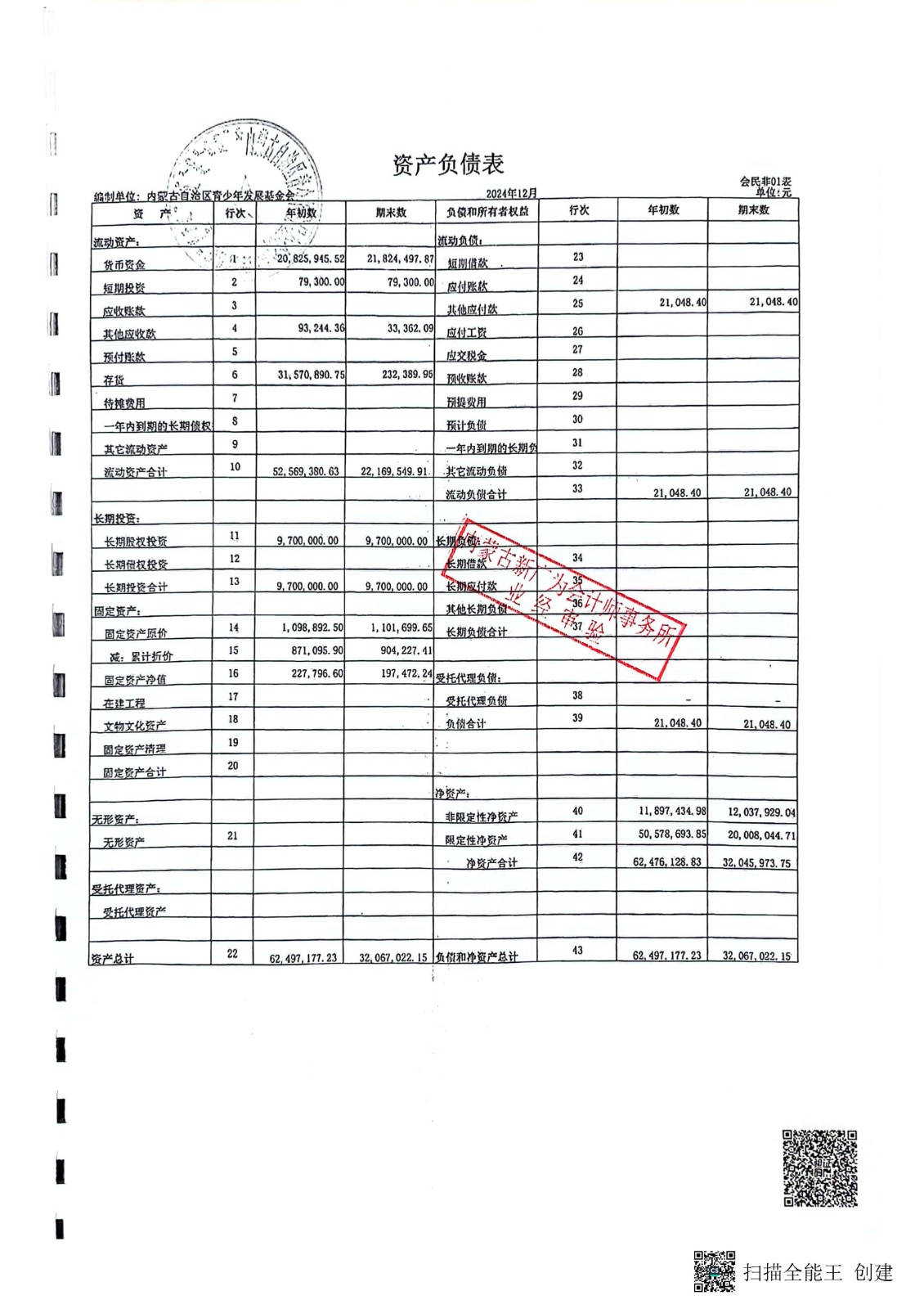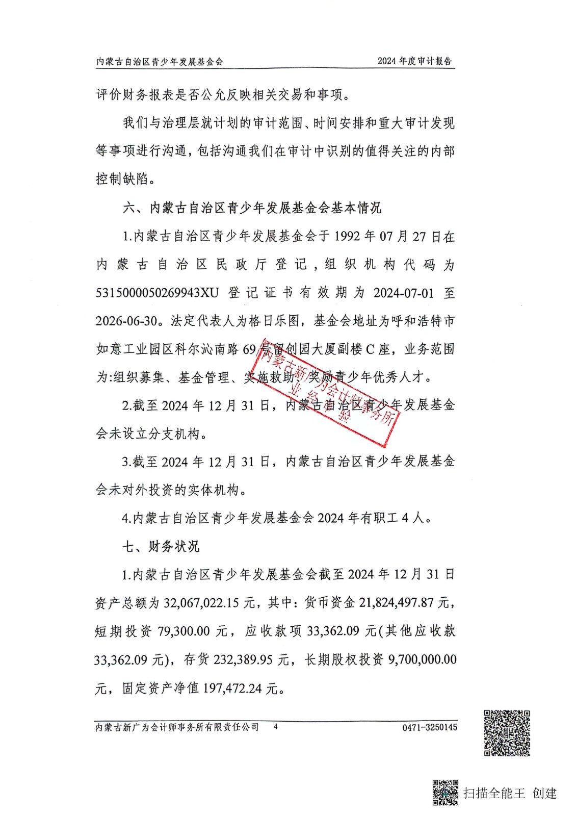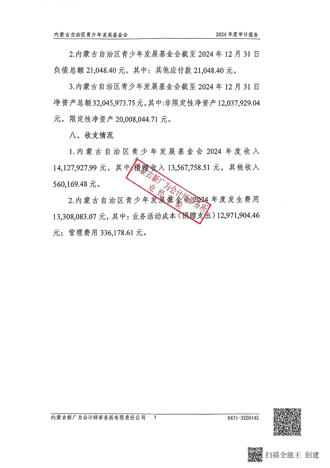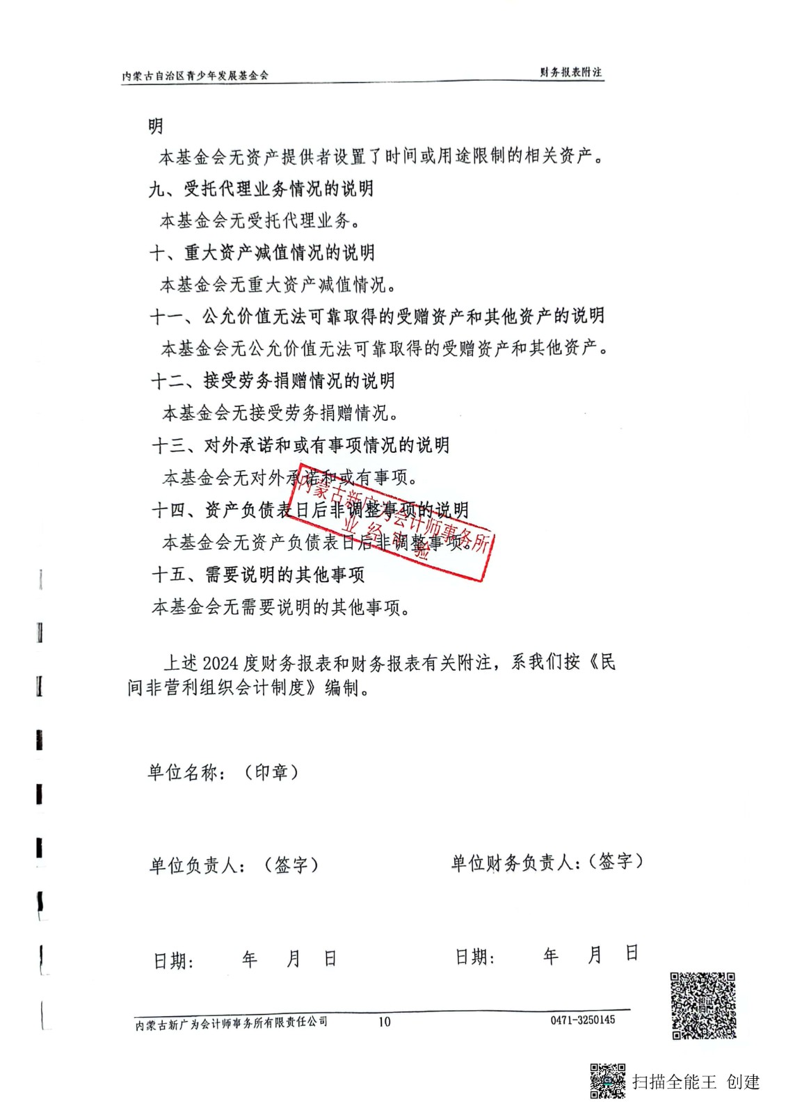 内蒙古自治区青少年发展基金会2024年度财务报表审计报告